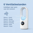 3 Instelbare Wind Snelheden: Kies uit drie verschillende windstanden voor de perfecte luchtstroom. Of je nu behoefte hebt aan een krachtige verkoeling of een subtiele bries, je hebt altijd controle over de intensiteit van de luchtstroom.