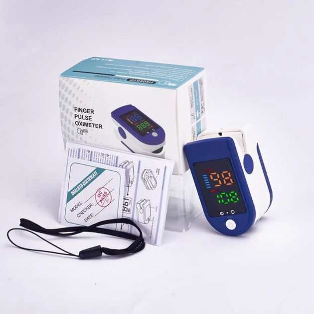Stemap® Finger Pulse Oximeter | Heart Rate Monitor | Saturation Meter | White/Blue | Includes Wrist Strap, Manual | Batteries Included